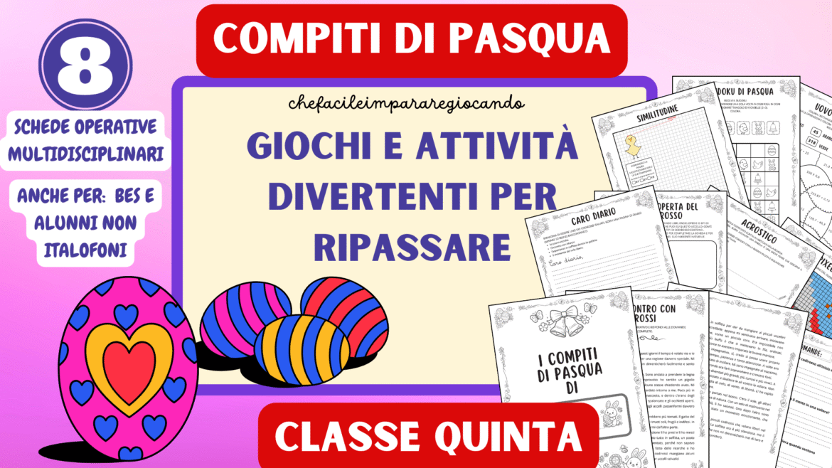 Un fascicolo multidisciplinare completo e stimolante, pensato per accompagnare gli alunni di classe quinta durante le vacanze pasquali con attività multidisciplinari, in un percorso equilibrato tra riflessione, creatività e consolidamento delle competenze.