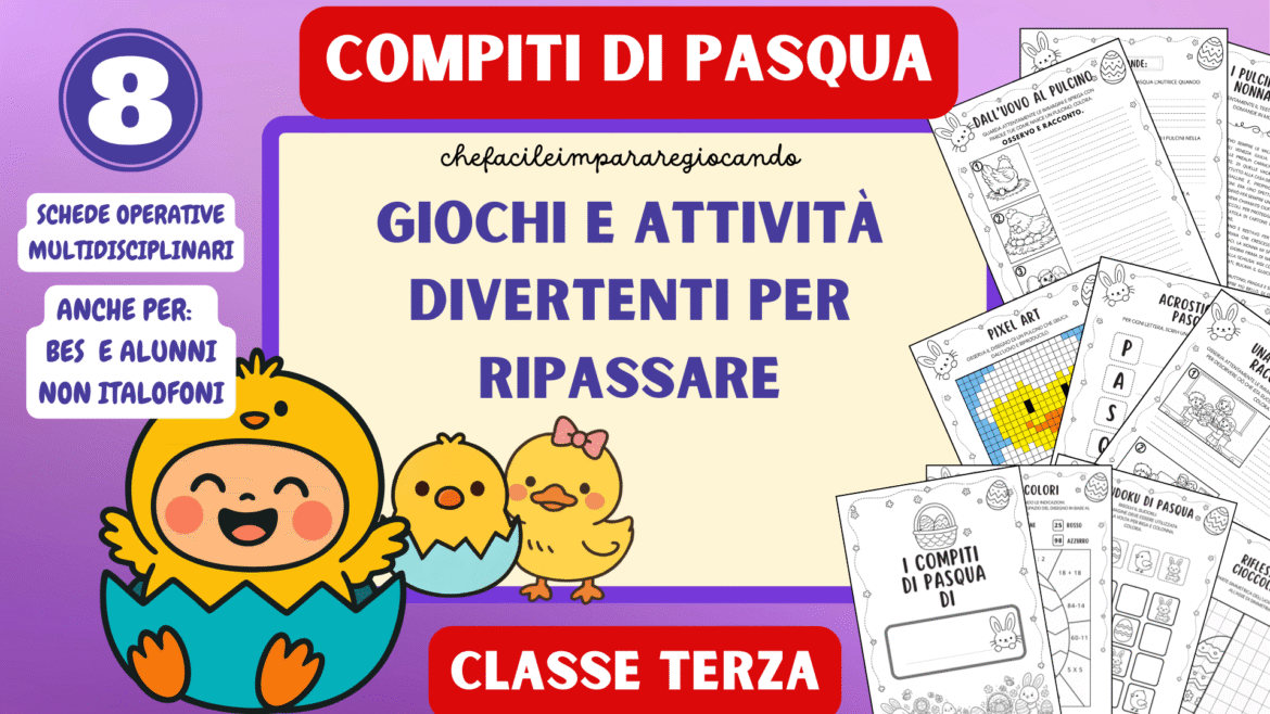 Un fascicolo multidisciplinare pensato per accompagnare gli alunni di classe terza durante le vacanze pasquali con attività coinvolgenti, soprattutto di Italiano e Matematica, che uniscono creatività, comprensione del testo, logica e calcolo.