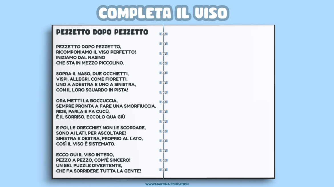 - Spiegare ai bambini che ricostruiranno un viso ascoltando una poesia