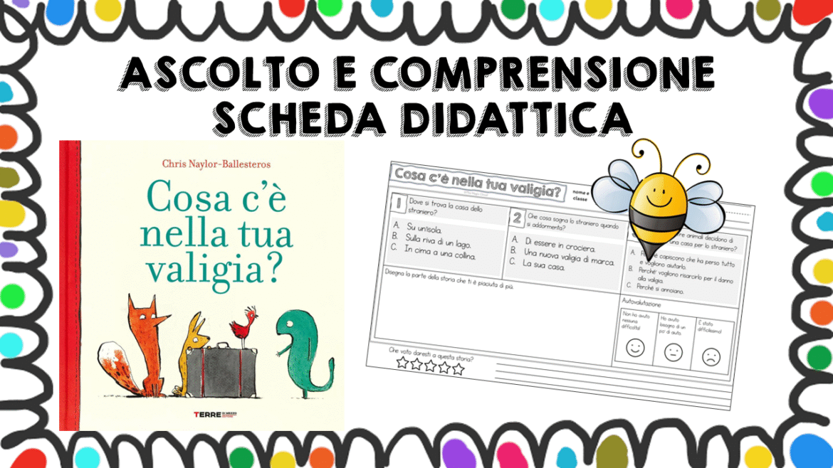 La scheda contiene delle domande utilizzabili per un’attività di comprensione della lingua scritta o ascoltata (3 domande su contesto generale, informazioni specifiche e morale/messaggio della storia). Risorsa educativa perfetta per rafforzare lo studio della lingua, per arricchire il vocabolario attivo, stimolare l’agenzia nell’allievo e migliorare le sue capacità di rappresentazione attraverso lo stimolo del disegno. Contiene anche un esercizio di rappresentazione, presentazione e autovalutazione.