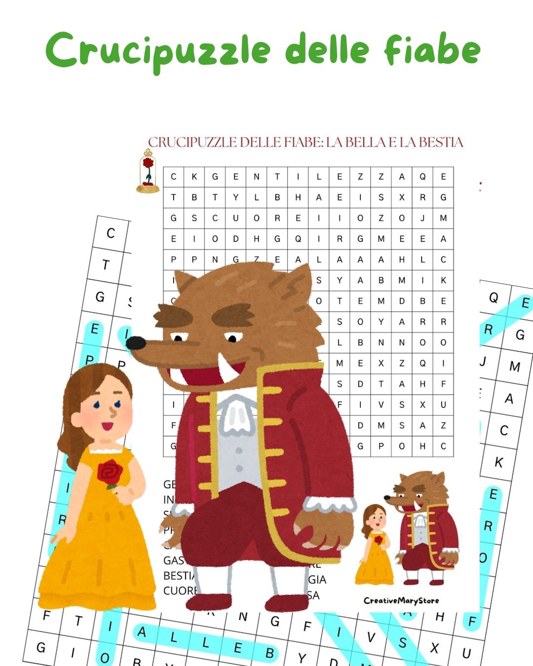 Crucipuzzle delle Fiabe – Attività Didattiche Divertenti per la Scuola Primaria Creato da Maestra Maria Un pacchetto colorato e coinvolgente di crucipuzzle ispirati alle fiabe classiche, pensato per i bambini della scuola primaria. Attraverso il gioco, i bambini arricchiscono il vocabolario, migliorano la concentrazione e riscoprono il piacere della lettura. Le schede propongono parole chiave legate a quattro fiabe amatissime: I Tre Porcellini Cenerentola La Bella e la Bestia Il Gatto con gli Stivali Obiettivi didattici Ampliare il lessico legato al mondo delle fiabe Stimolare l’attenzione visiva e la concentrazione Rinforzare la lettura e l’ortografia in modo ludico Promuovere la comprensione del testo attraverso il gioco Contenuto del pacchetto: 4 crucipuzzle stampabili (ognuno con 16 parole tematiche) Illustrazioni fiabesche in bianco e nero Formato A4 pronto per la stampa Ideale per attività in classe o laboratori di lettura Perfetto per momenti di apprendimento divertente e creativo!