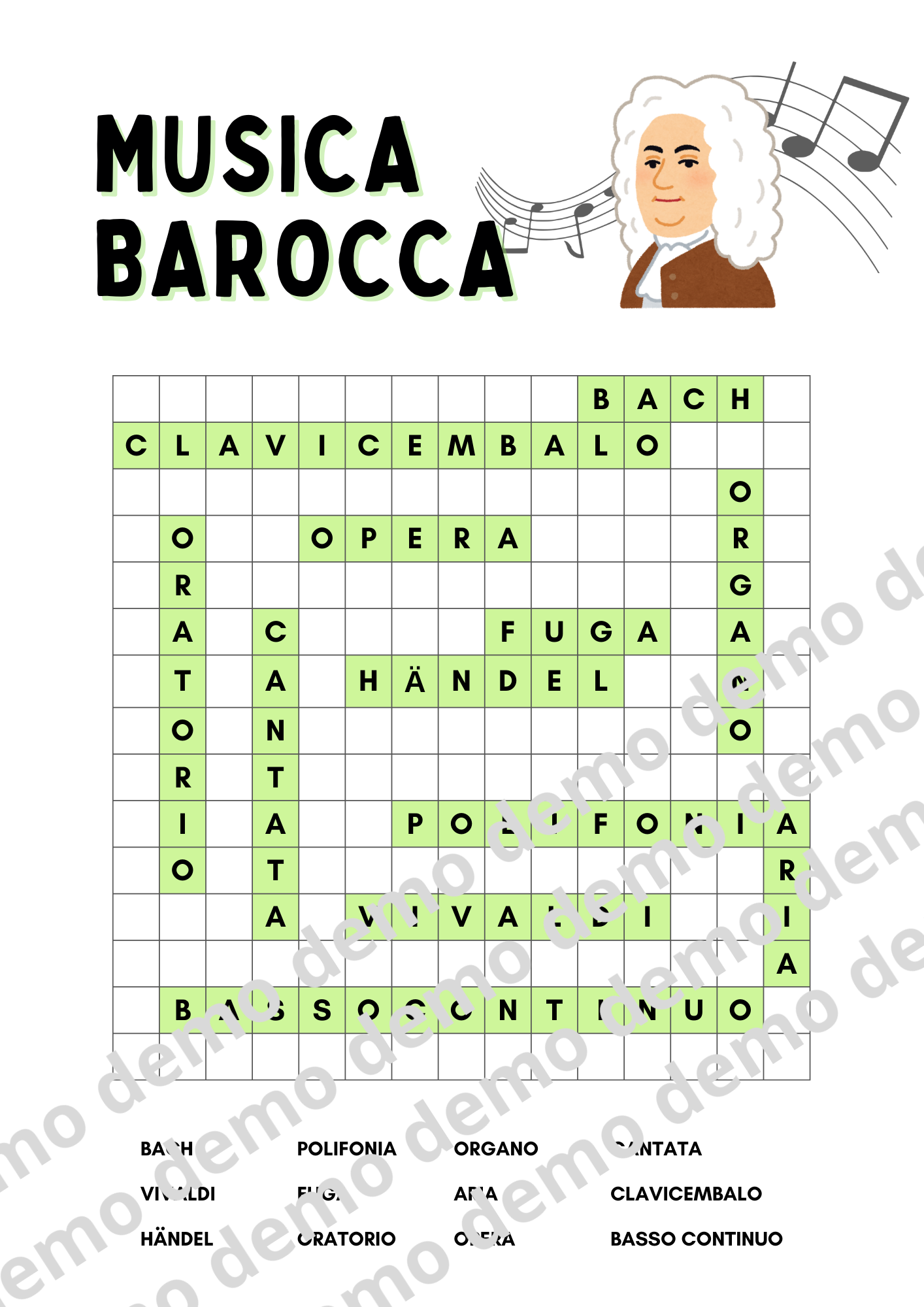 Musica dell’epoca barocca – crucipuzzle (cerca parole)