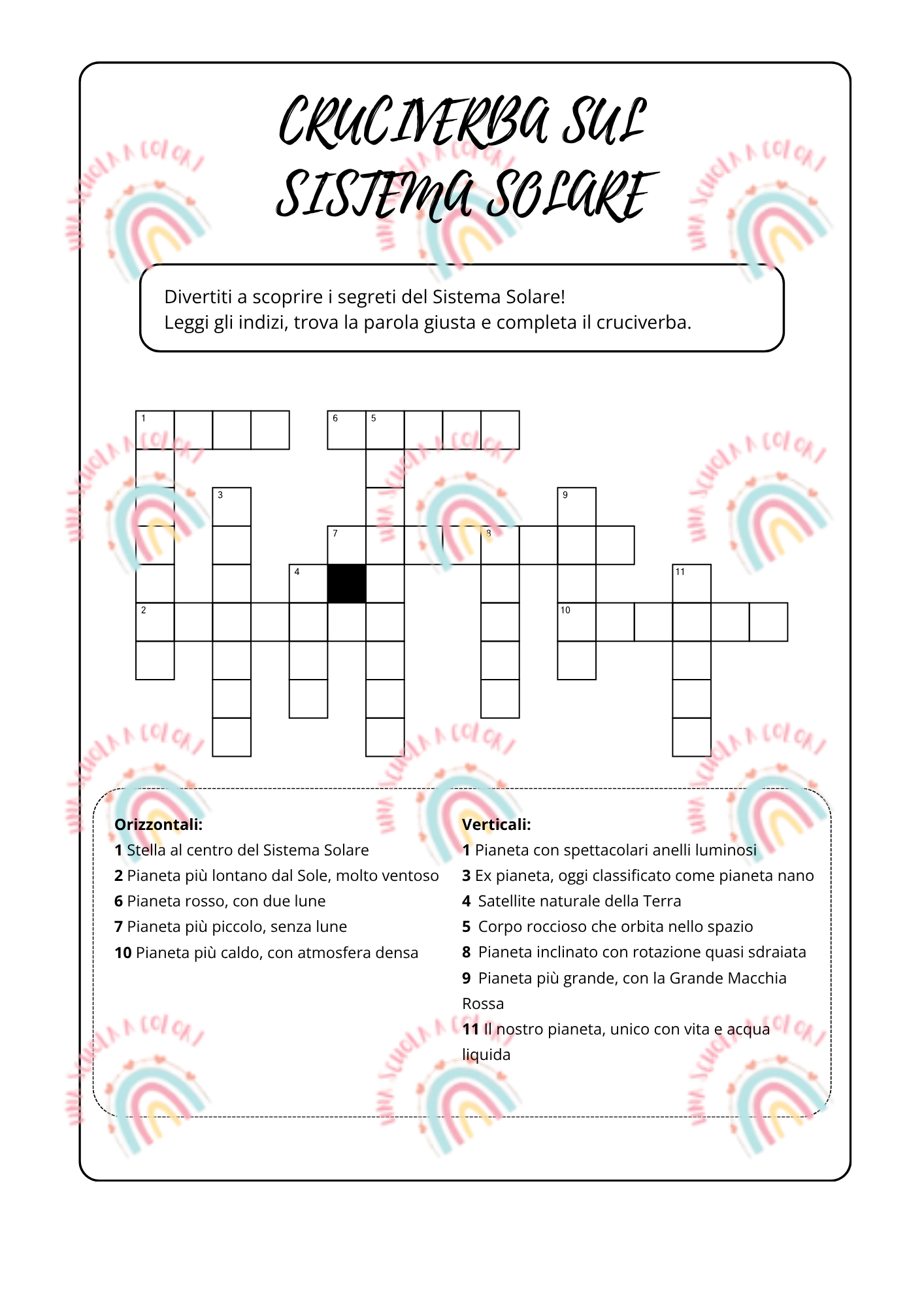 Un cruciverba divertente e accattivante per imparare le principali caratteristiche dei pianeti del nostro sistema solare.