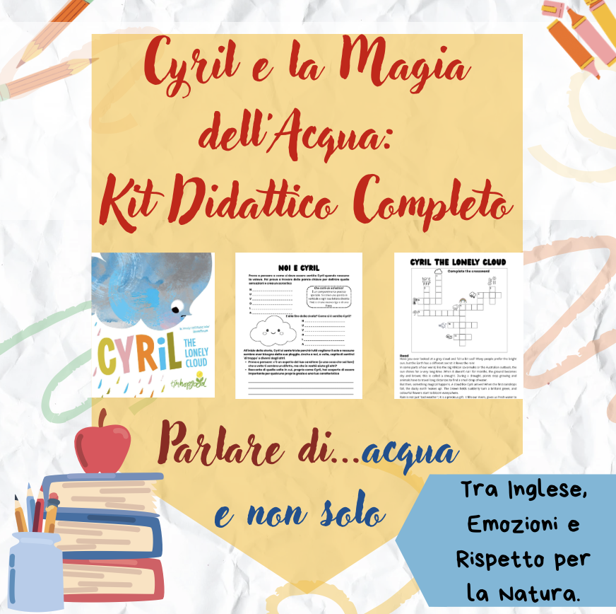 Festeggia la Giornata Mondiale dell’Acqua con un percorso completo ispirato al dolcissimo albo illustrato “Cyril the Lonely Cloud” di Tim Hopgood. Questo kit di 2 pagine è progettato per le classi della Scuola Primaria (ideale per una classe quarta) e offre un approccio multidisciplinare che lega la lingua inglese alla riflessione personale .