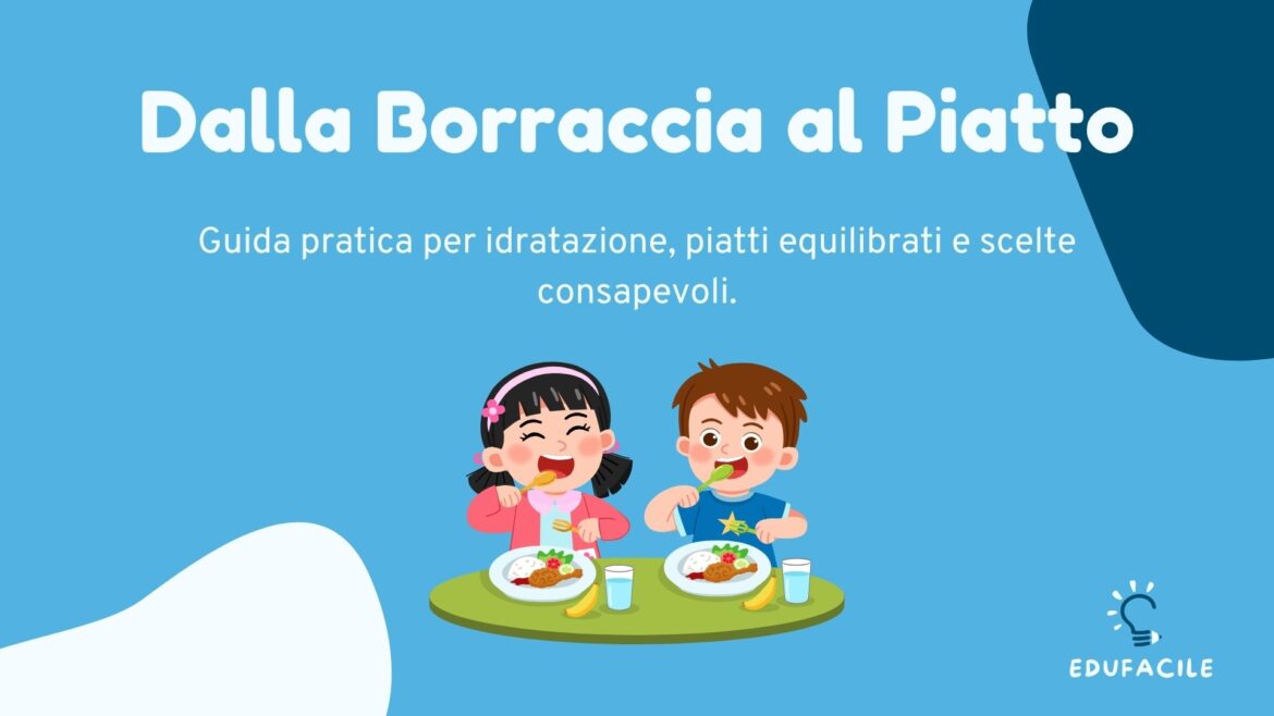 Un modulo completo, pronto all’uso, che unisce acqua e cibo in chiave didattica: slide chiare per LIM, attività brevi, esercizi guidati e schede stampabili. Gli alunni imparano a comprendere a cosa serve l’acqua, a costruire un piatto equilibrato, a distinguere i vari macronutrienti e a leggere le etichette per scegliere uno spuntino consapevole.