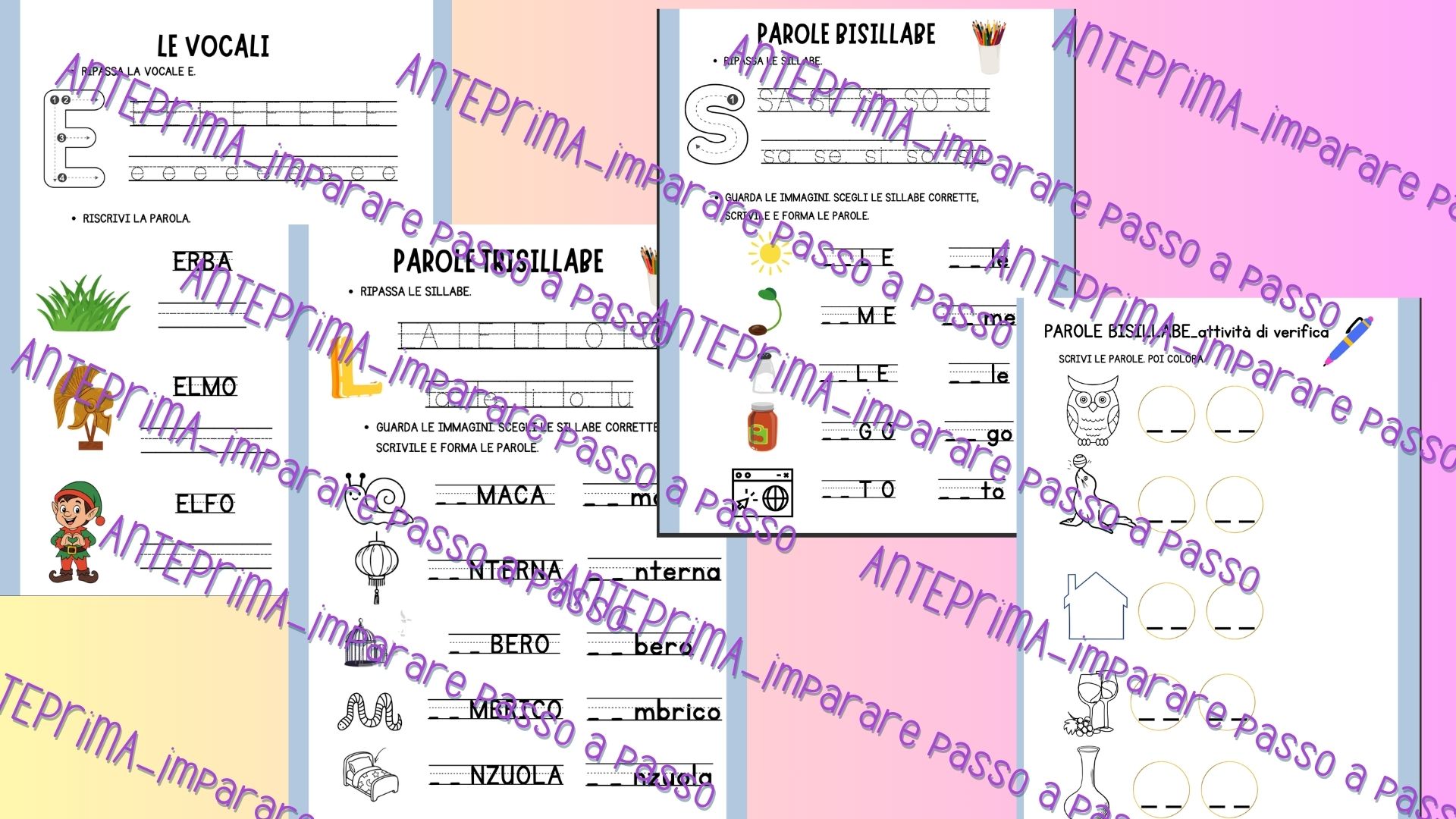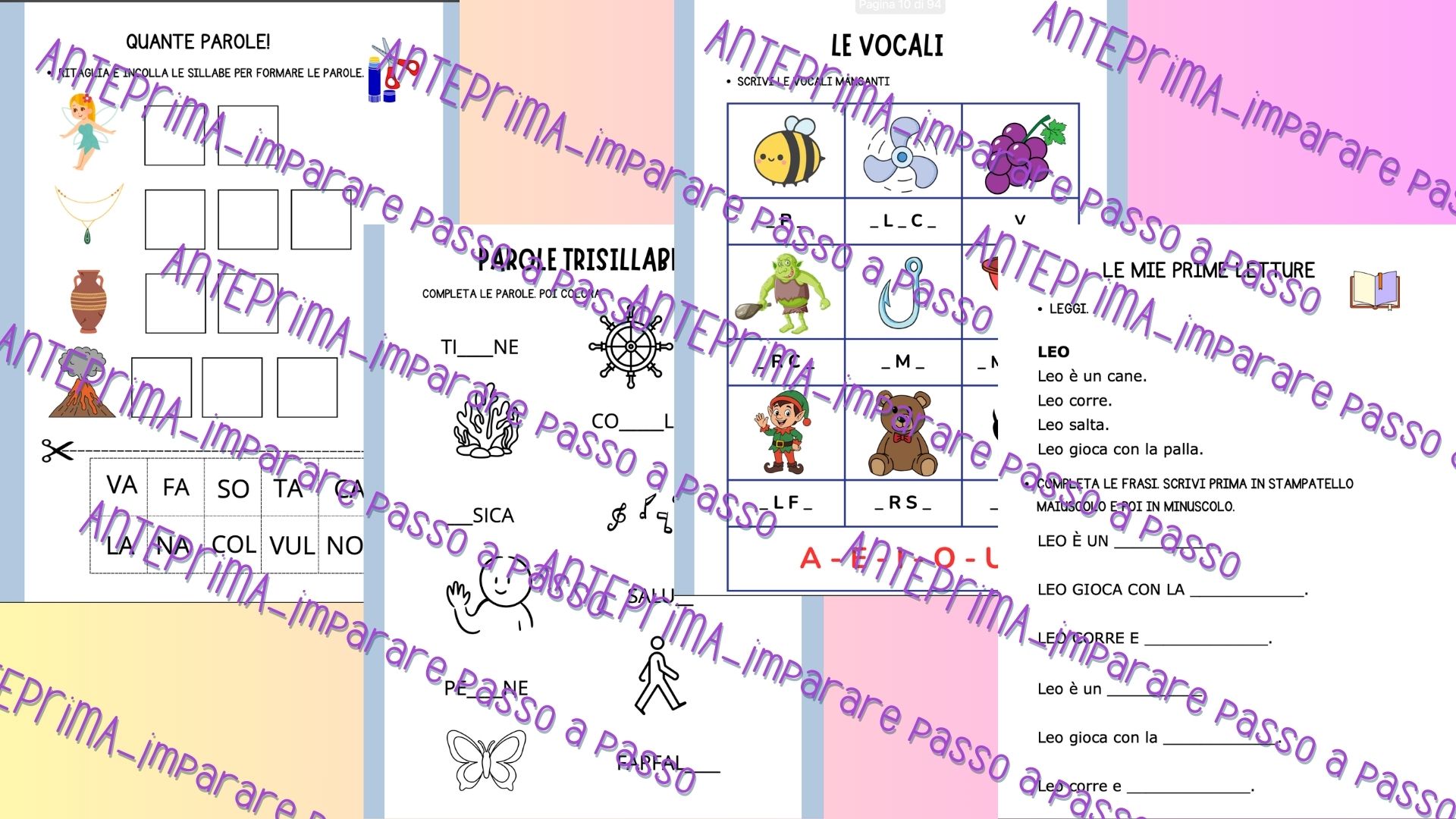 Il PDF è organizzato in modo progressivo, con difficoltà crescente, per accompagnare ogni bambino verso una maggiore autonomia nella lettura e nella scrittura.
