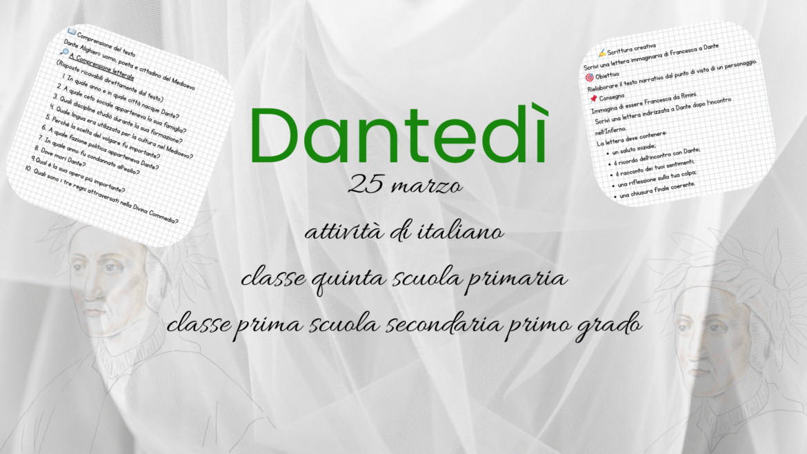 Percorso completo di italiano dedicato a Dante Alighieri, pensato per classe quinta primaria e prima secondaria di primo grado.