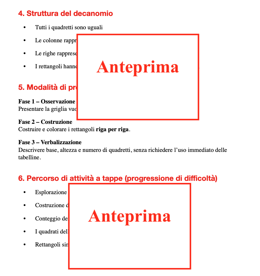 Percorso visivo e manipolativo con decanomio stampabile (parziale e completo), carte-attività per alunni e guida per insegnanti