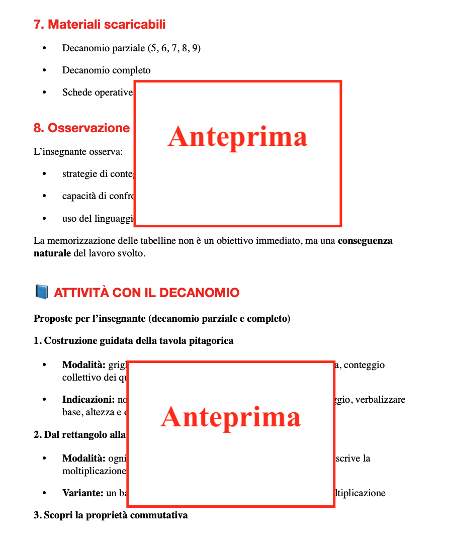 Il decanomio non è solo un insieme di numeri, ma un percorso visivo e manipolativo per scoprire le tabelline in modo concreto.