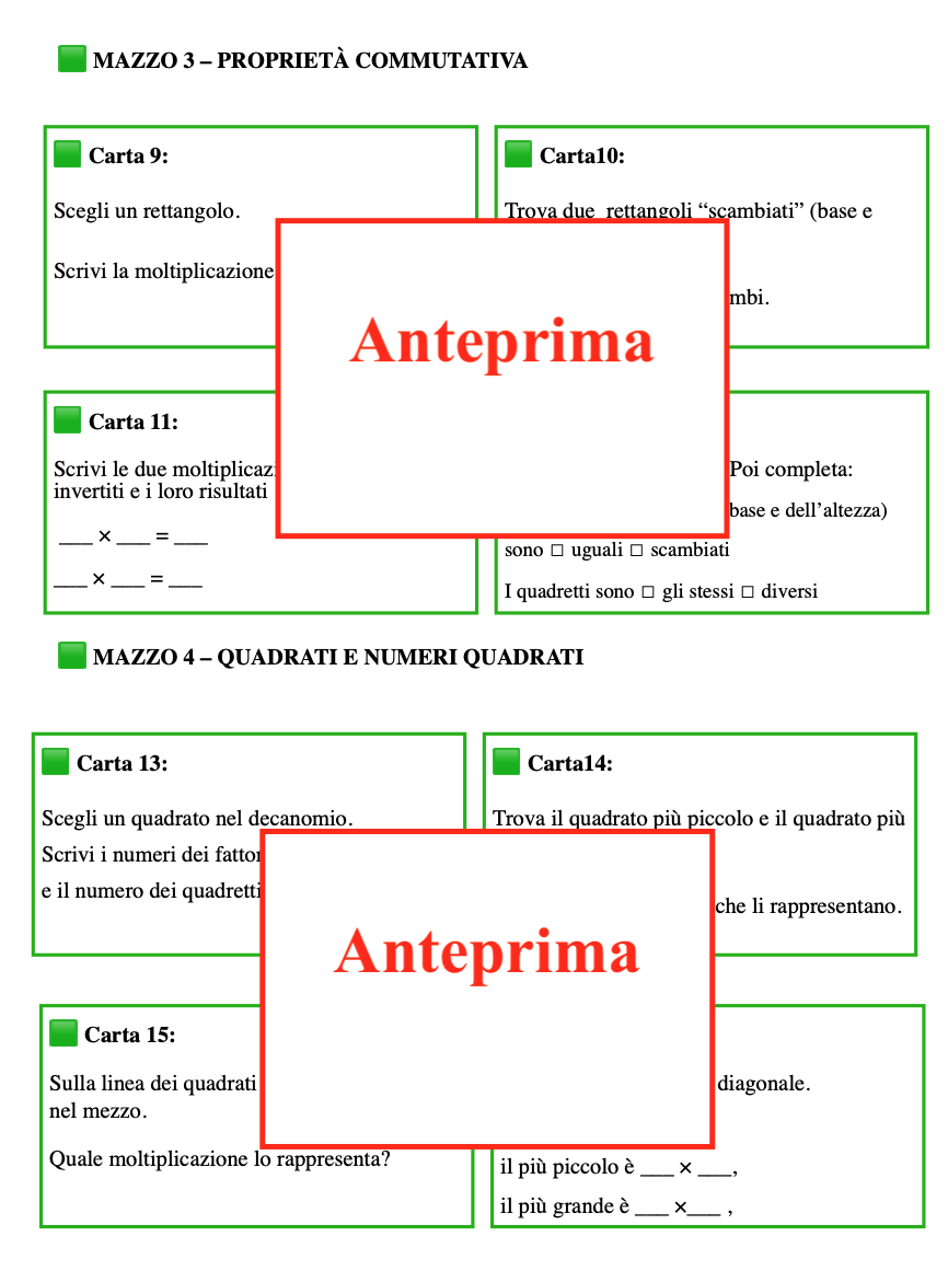 🟦 Mazzo 2 – Dall’area alla moltiplicazione (consolidamento-tot.4 carte)