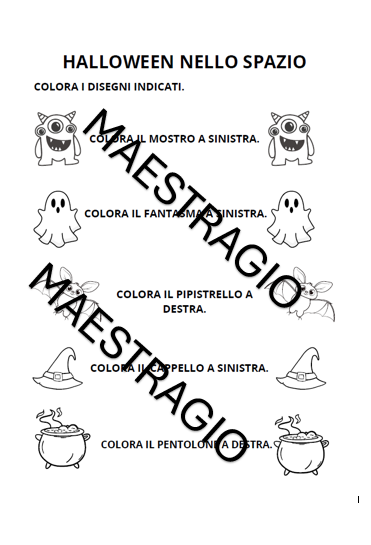 Scheda didattica per il consolidamento dei concetti topologici DESTRA e SINISTRA a tema Halloween.