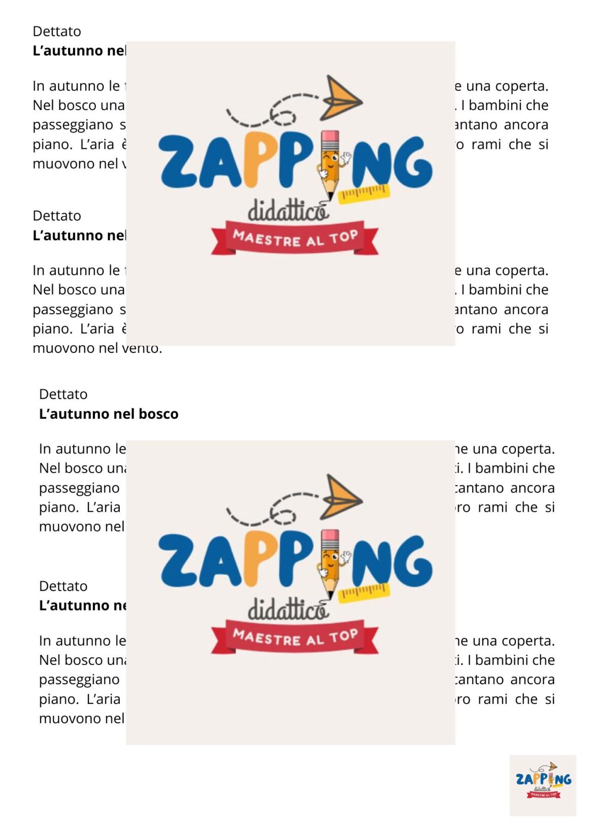 Un dettato autunnale che comprende anche domande di comprensione. Due a scelta multipla, due domande aperte, una domanda personale di scrittura e una di rappresentazione grafica di ciò che si è scritto/letto. Dopo avere dettato il testo ai bambini viene consegnato il brano in modo da favorire l’autocorrezione. Dopo gli alunni risponderanno alle domande.
