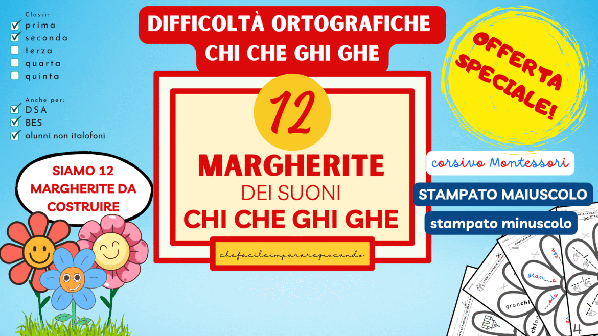 Questo materiale didattico è stato progettato per insegnare ai bambini i suoni “CHI-CHE-GHI-GHE” attraverso un approccio interattivo e coinvolgente. Le schede operative sono strutturate per sviluppare diverse abilità linguistiche: