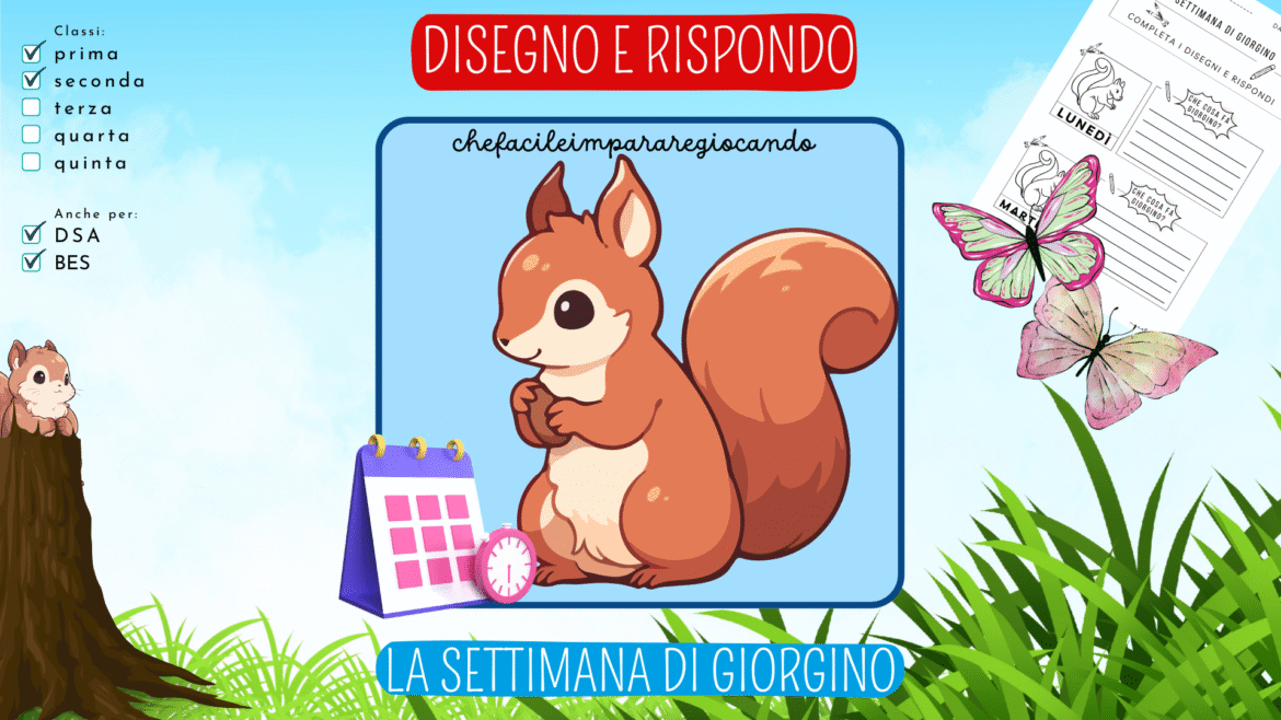 Impara i giorni della settimana con Giorgino, lo scoiattolo del giardino! 🐿️