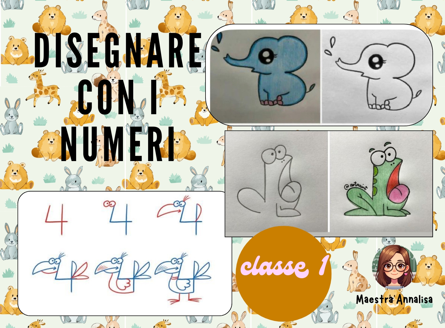 Partendo dalla scrittura dei numeri, i bambini vengono guidati passo dopo passo a trasformarli in simpatici disegni(animali e personaggi). Un modo efficace per rendere l’apprendimento più coinvolgente e significativo.