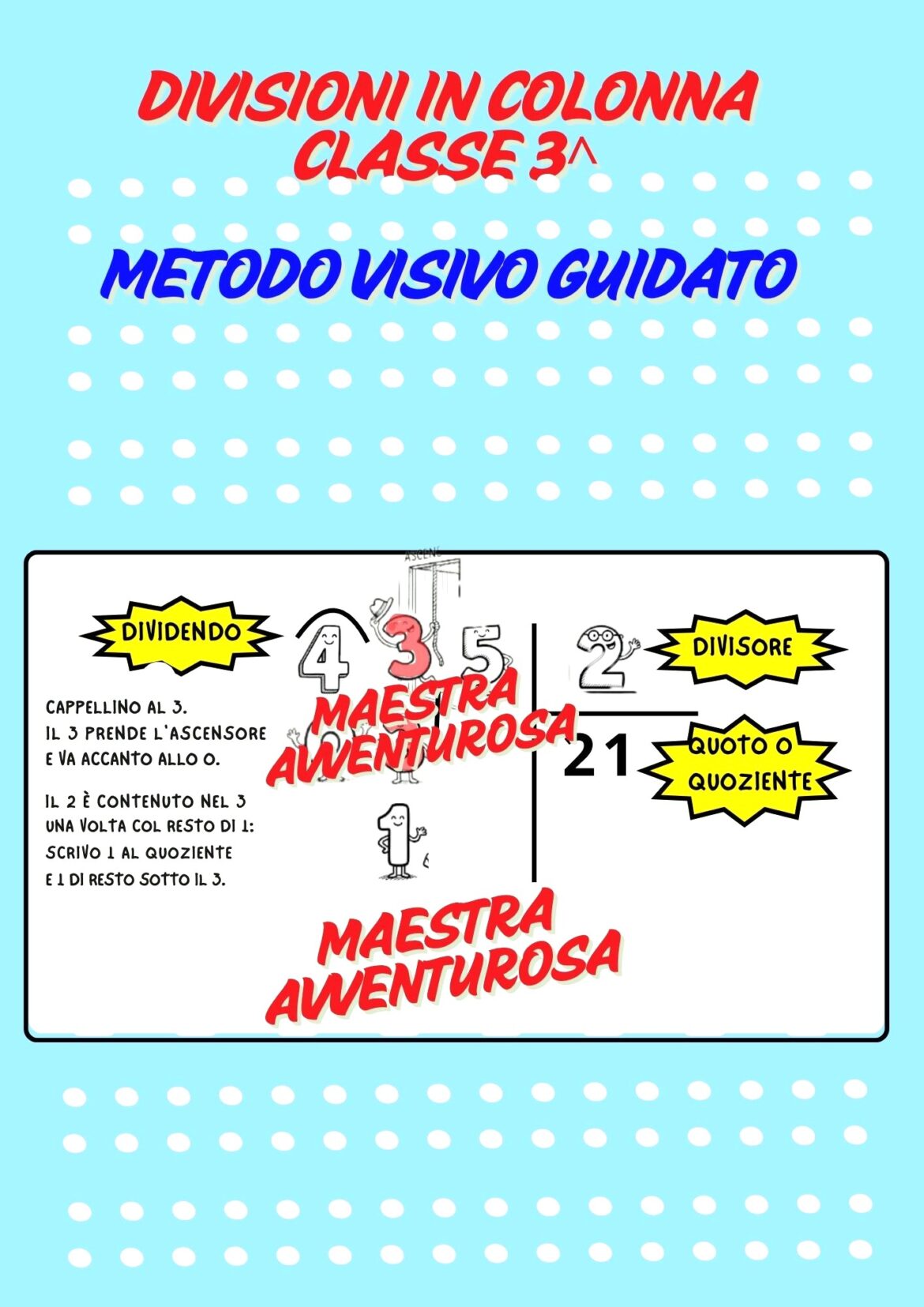 Questo materiale didattico offre un percorso chiaro e coinvolgente per insegnare le divisioni in colonna agli alunni della classe terza. Con un metodo visivo e guidato, i bambini imparano a padroneggiare questa operazione fondamentale.