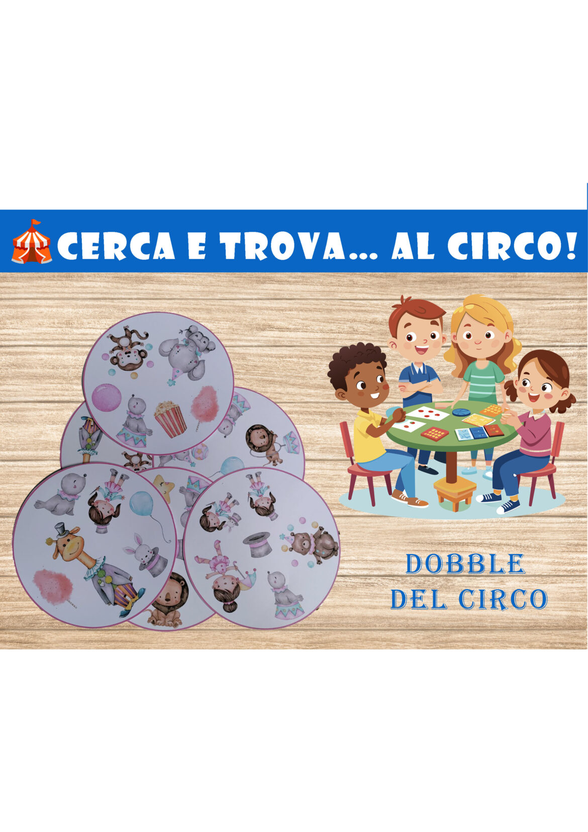 Entra nel magico mondo del circo e sfida i tuoi amici a trovare il simbolo in comune tra due carte! Un gioco divertente, rapido e ricco di illustrazioni colorate, ideale per allenare attenzione, colpo d’occhio e prontezza.