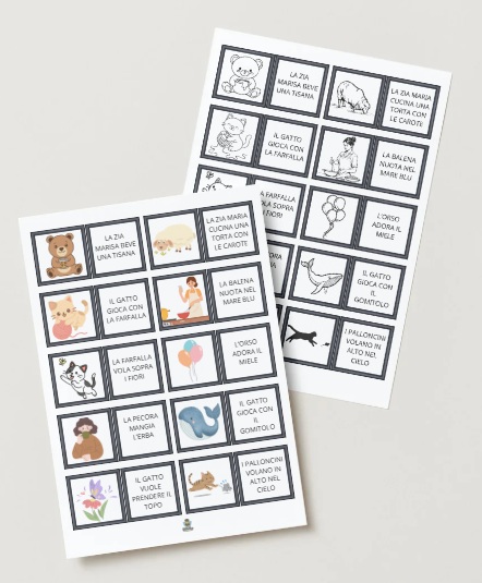 Gioco didattico pensato per alunni con difficoltà che necessitano di strumenti ludici per esercitare la lettura, ma utilizzabile in classe prima nei primi approcci alla lettura di frasi.