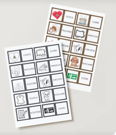 Domino con 10 parole capricciose per giocare e allo stesso tempo memorizzare queste paroline che spesso sono difficili da ricordare. Doppia versione: in bianco e nero e a colori (le immagini nelle due versioni sono leggermente differenti, ma le parole sono le stesse).