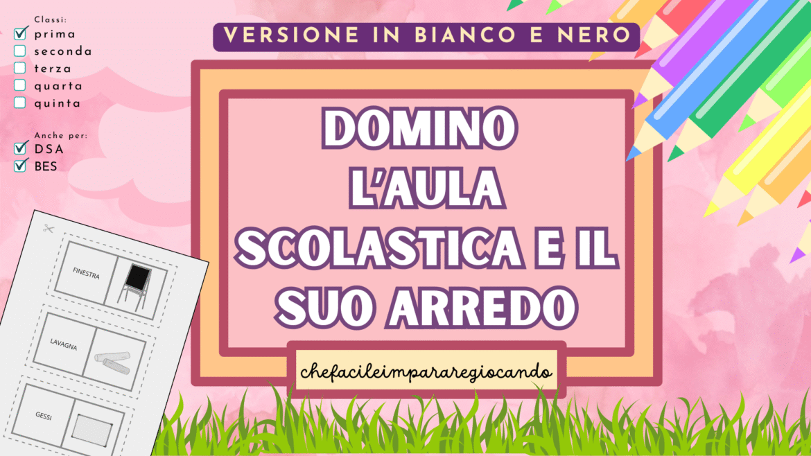DOMINO: L’AULA SCOLASTICA E IL SUO ARREDO – VERSIONE A COLORI