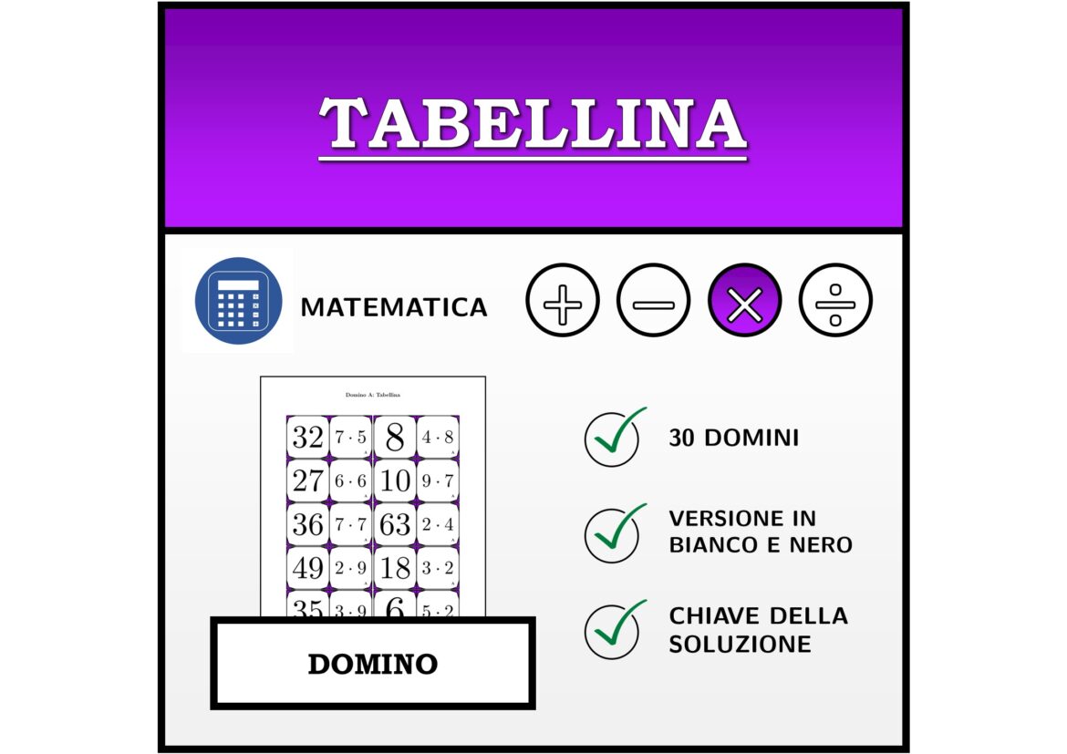 Il materiale contiene in totale 30 set di Domino (attività matematiche) sul tema tabellina, così suddivisi: