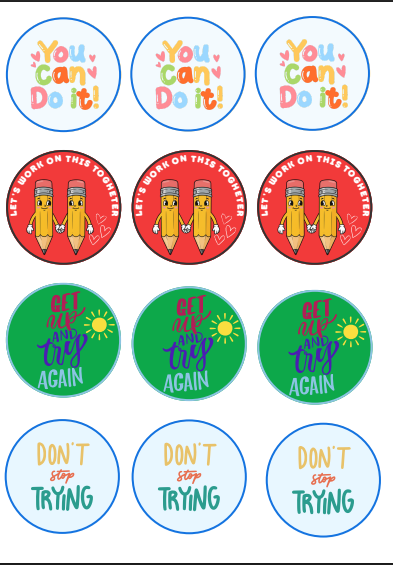 Sticker motivazionali in lingua inglese per incoraggiare i più piccoli ed ispirarli a dare il meglio nello studio e nelle attività quotidiane.