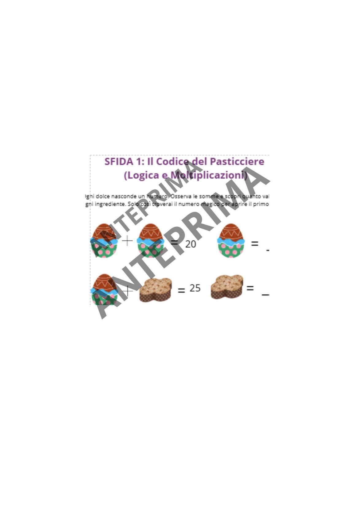 Operazione Pasqua è un kit didattico completo basato sul Cooperative Learning, progettato specificamente per gli alunni della scuola primaria. Le sfide sono pensate per essere risolte in gruppo. Questo stimola il peer-tutoring (i bambini si aiutano a vicenda), la negoziazione e la capacità di lavorare insieme per un obiettivo comune. Grazie ai diversi tipi di sfide (grafiche, logiche e di calcolo), ogni bambino può contribuire secondo le proprie attitudini. Scarica, stampa e la lezione è pronta!