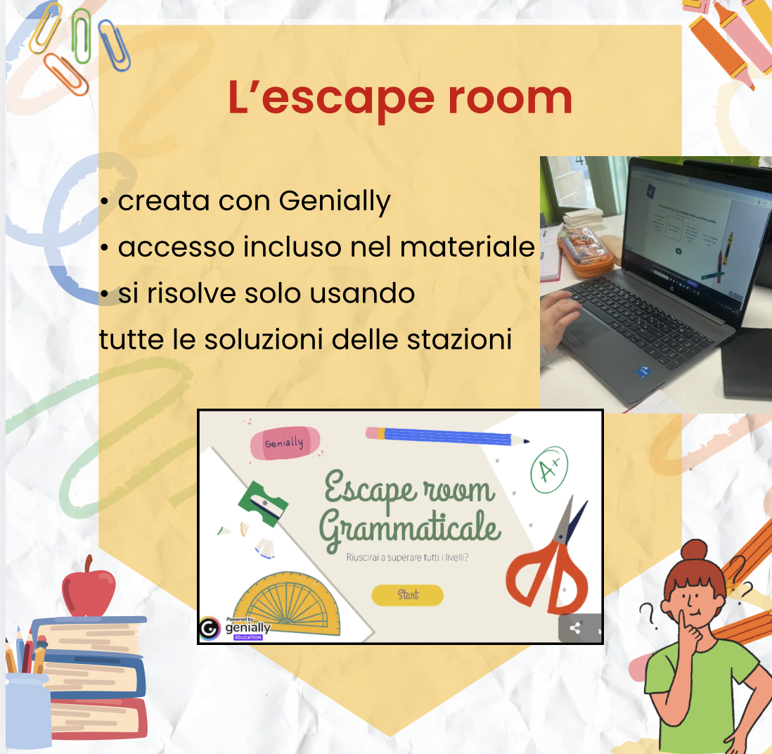 👉 Tutte le soluzioni degli enigmi conducono alla risoluzione di una escape room grammaticale,