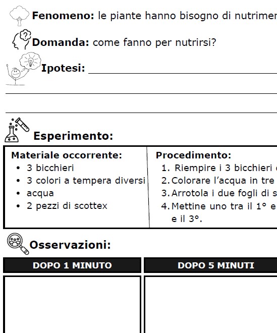 Scheda per esperimento sulle proprietà dell’acqua. Osservazione guidata e attività di completamento.