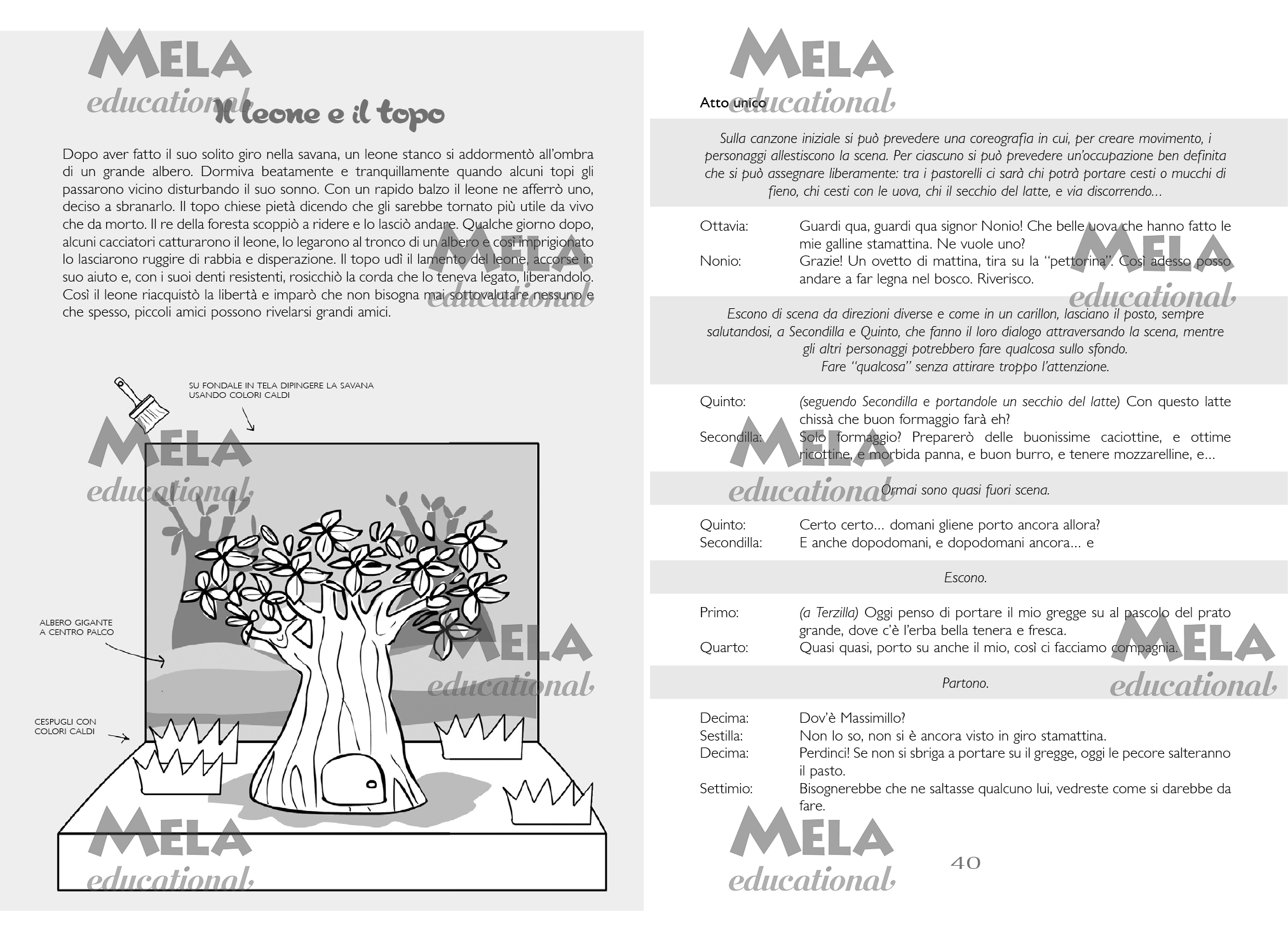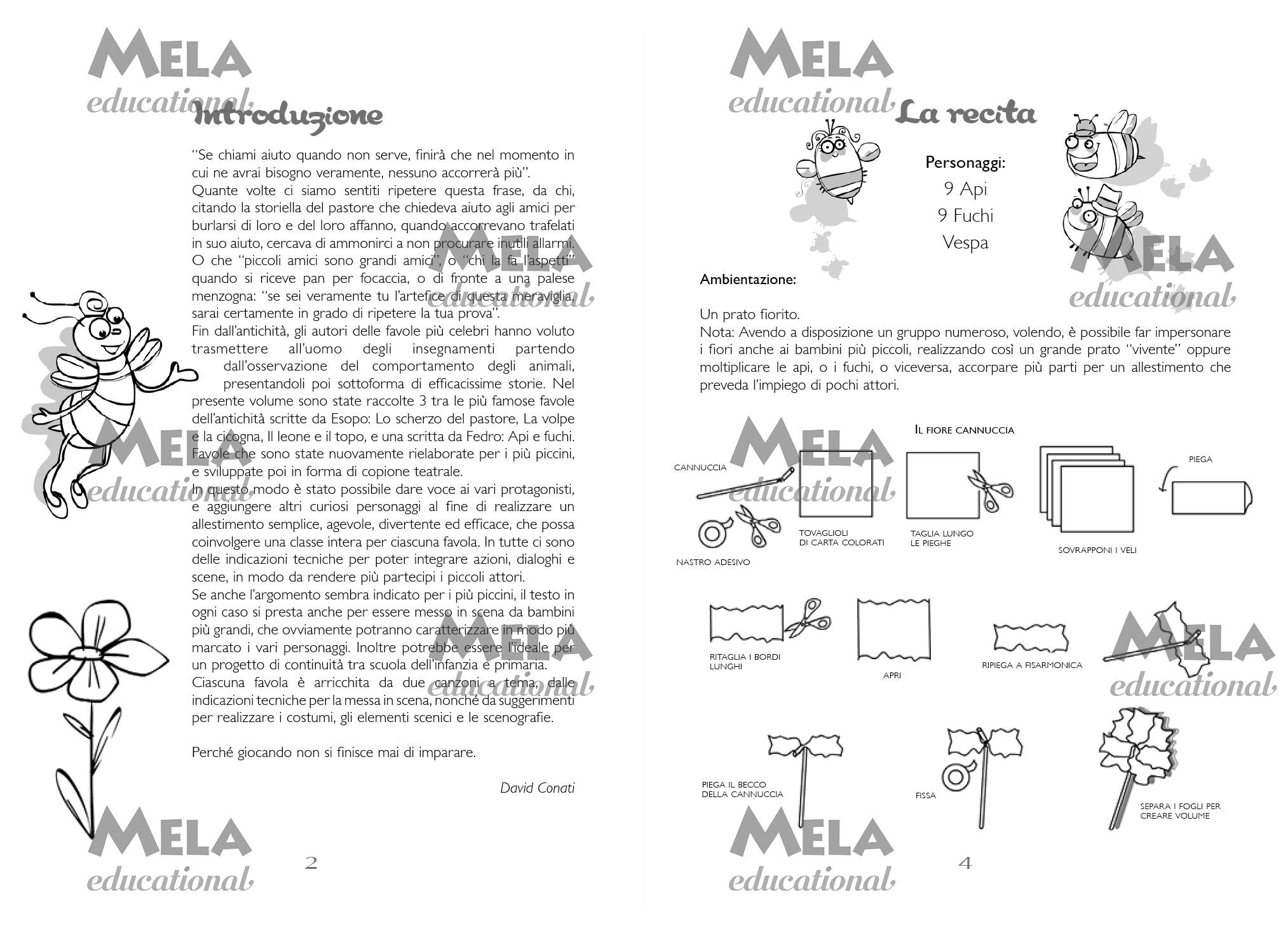 “Se chiami aiuto quando non serve, finirà che nel momento in cui ne avrai bisogno veramente, nessuno accorrerà più”. Quante volte ci siamo sentiti ripetere questa frase, da chi, citando la storiella del pastore che chiedeva aiuto agli amici per burlarsi di loro e del loro affanno, quando accorrevano trafelati in suo aiuto, cercava di ammonirci a non procurare inutili allarmi. O che “piccoli amici sono grandi amici”, o “chi la fa l’aspetti” quando si riceve pan per focaccia, o di fronte a una palese menzogna: “se sei veramente tu l’artefice di questa meraviglia, sarai certamente in grado di ripetere la tua prova”. Fin dall’antichità, gli autori delle favole più celebri hanno voluto trasmettere all’uomo degli insegnamenti partendo dall’osservazione del comportamento degli animali, presentandoli poi sottoforma di efficacissime storie. Nel presente volume sono state raccolte 3 tra le più famose favole dell’antichità scritte da Esopo: Lo scherzo del pastore, La volpe e la cicogna, Il leone e il topo, e una scritta da Fedro: Api e fuchi. Favole che sono state nuovamente rielaborate per i più piccini, e sviluppate poi in forma di copione teatrale. In questo modo è stato possibile dare voce ai vari protagonisti, e aggiungere altri curiosi personaggi al fine di realizzare un allestimento semplice, agevole, divertente ed efficace, che possa coinvolgere una classe intera per ciascuna favola. In tutte ci sono delle indicazioni tecniche per poter integrare azioni, dialoghi e scene, in modo da rendere più partecipi i piccoli attori. Se anche l’argomento sembra indicato per i più piccini, il testo in ogni caso si presta anche per essere messo in scena da bambini più grandi, che ovviamente potranno caratterizzare in modo più marcato i vari personaggi. Inoltre potrebbe essere l’ideale per un progetto di continuità tra scuola dell’infanzia e primaria. Ciascuna favola è arricchita da due canzoni a tema, dalle indicazioni tecniche per la messa in scena, nonché da suggerimenti per realizzare i costumi, gli elementi scenici e le scenografie. Perché giocando non si finisce mai di imparare.