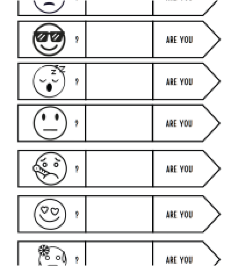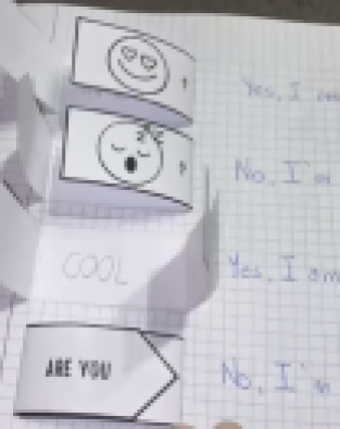 Lapbook sui feelings con la domanda “Are you…?” Alla quale si può rispondere sul quaderno con le risposte “Yes, I am/No, I’m not”.