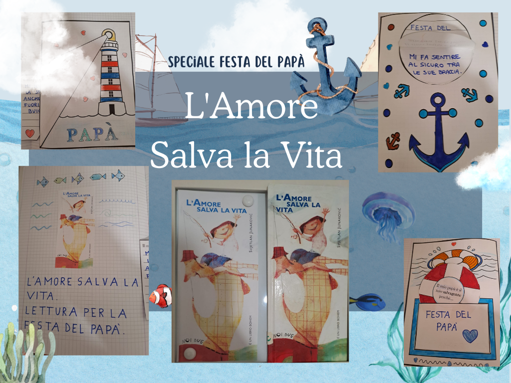 🌊 L’Amore Salva la Vita: Laboratorio Creativo per la Festa del Papà Ispirandoci al libro di Svjetlan Junaković, abbiamo esplorato il tema dell’amore che guida e protegge attraverso tre simboli legati al mondo dell’acqua. Ecco le attività che abbiamo realizzato: 1. Papà Faro 🕯️: Costruzione di un faro 3D per celebrare il papà come guida che illumina il cammino (pp. 1, 4). 2. Papà Ancora ⚓: Biglietto a sorpresa circolare per raccontare il papà come stabilità e forza nelle tempeste (pp. 2, 5). 3. Papà Salvagente ⭕: Laboratorio di ritaglio e dedica per ringraziare il papà, l’amore che ci protegge e “salva la vita” (pp. 3, 5).