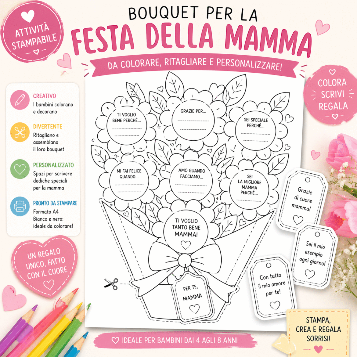 💡 I bambini colorano, ritagliano e scrivono… creando un regalo unico e pieno di emozione 💐