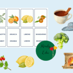 Ogni foglio A4 orizzontale contiene 4 flash cards ( immagine sopra+ testo in inglese e italiano sotto- dimensione singola: circa 6,6 cm × 7,4 cm), ideali per attività didattiche, giochi di associazione e decorazioni stagionali.