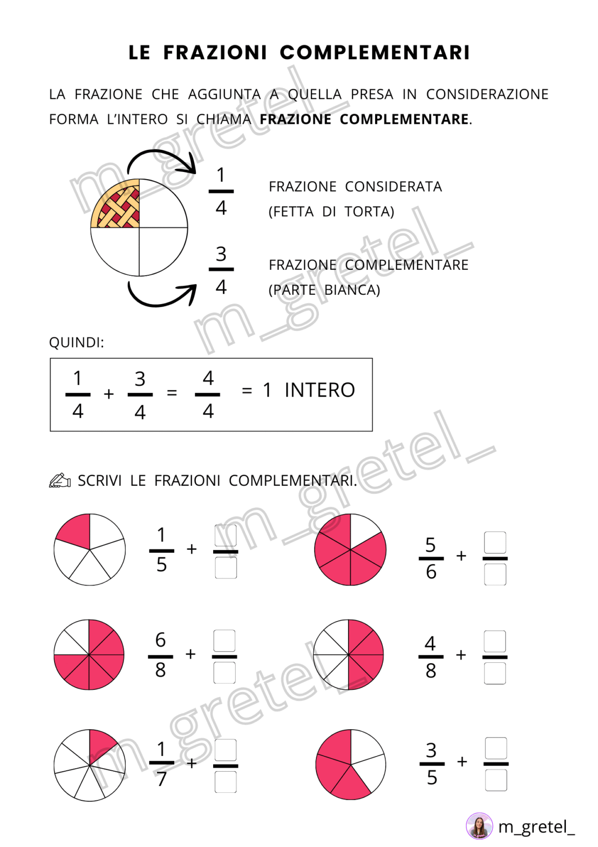 - Esercizio: data l’immagine scrivere le due frazioni complementari che formano l’intero.