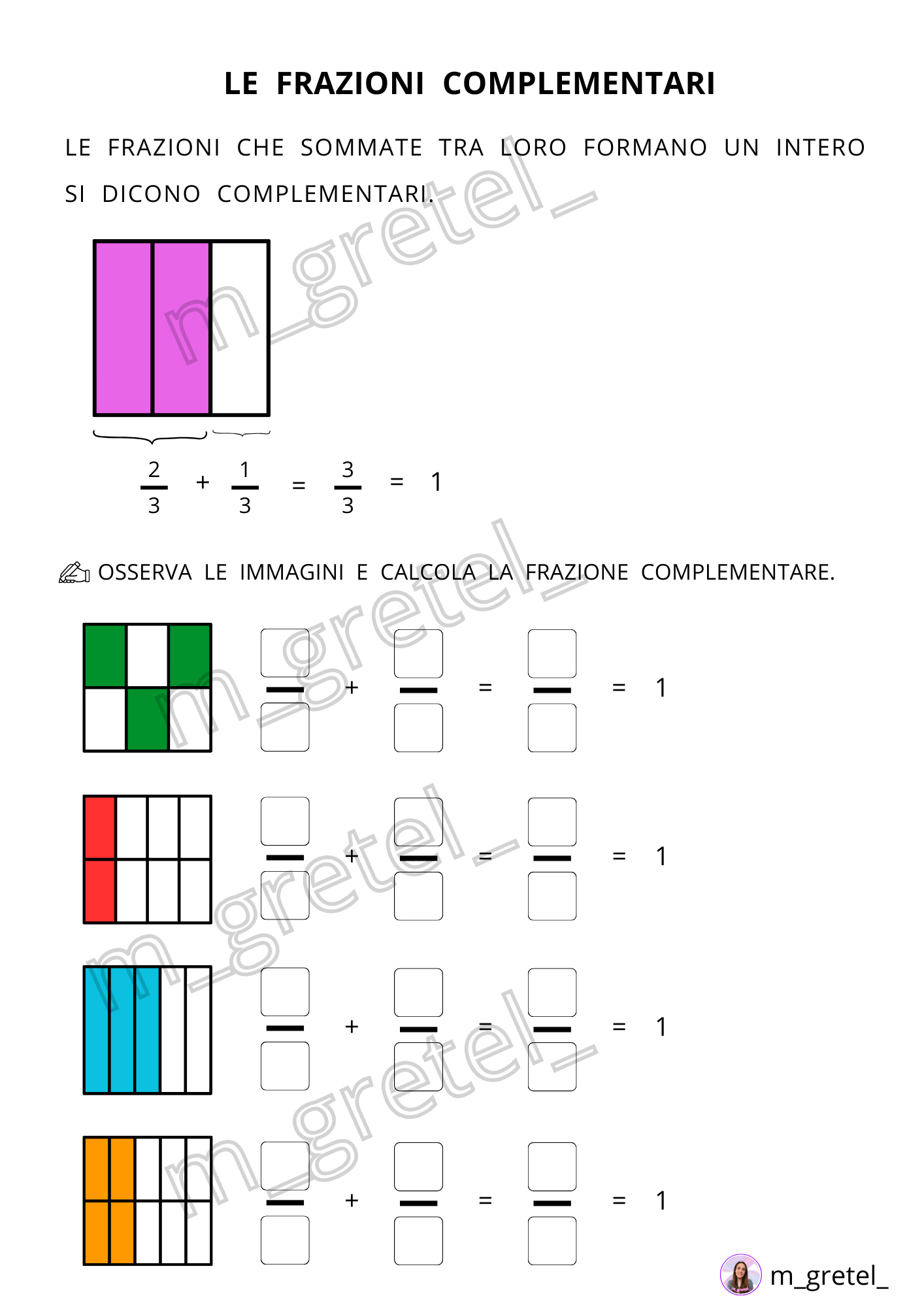 - Esercizio: data l’immagine scrivere le due frazioni complementari che formano l’intero.