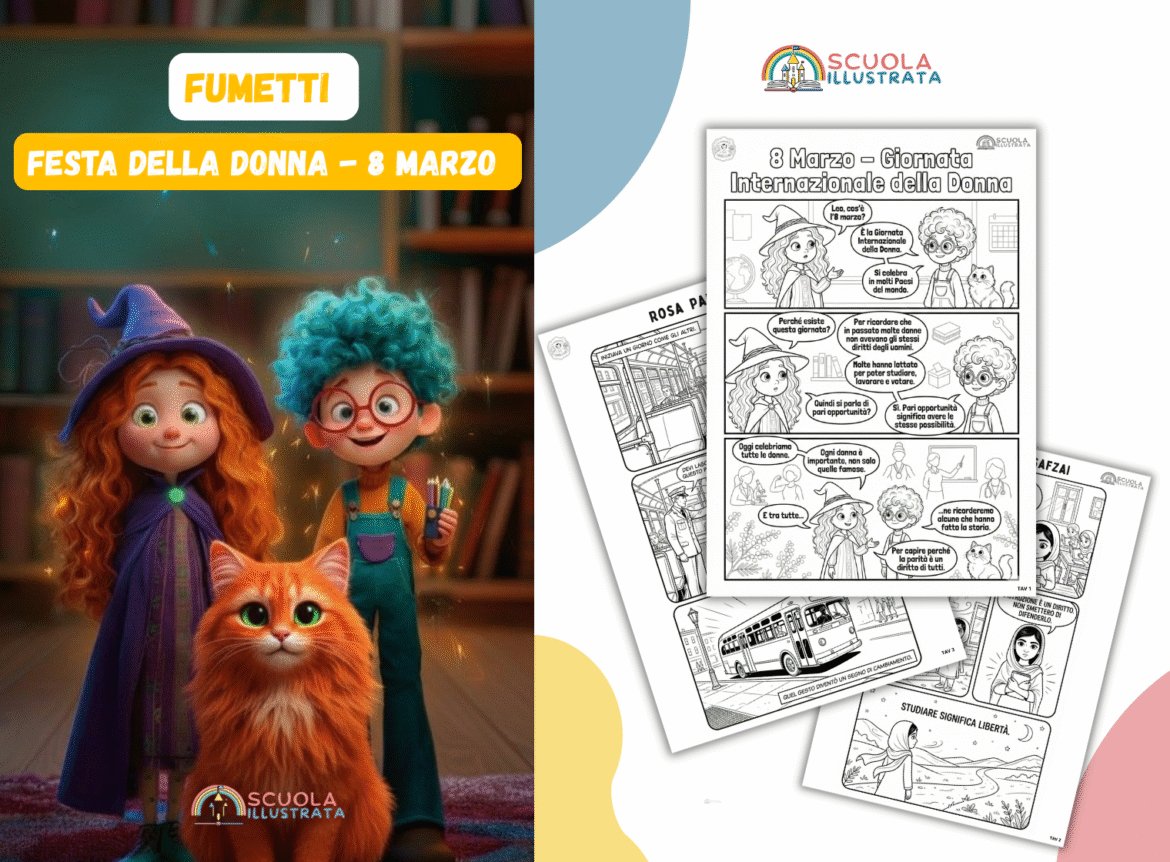 I FUMETTI DIDATTICI – 8 Marzo: Parità e Diritti sono un percorso educativo pensato per accompagnare i bambini della scuola primaria nella comprensione del significato della Festa della Donna.