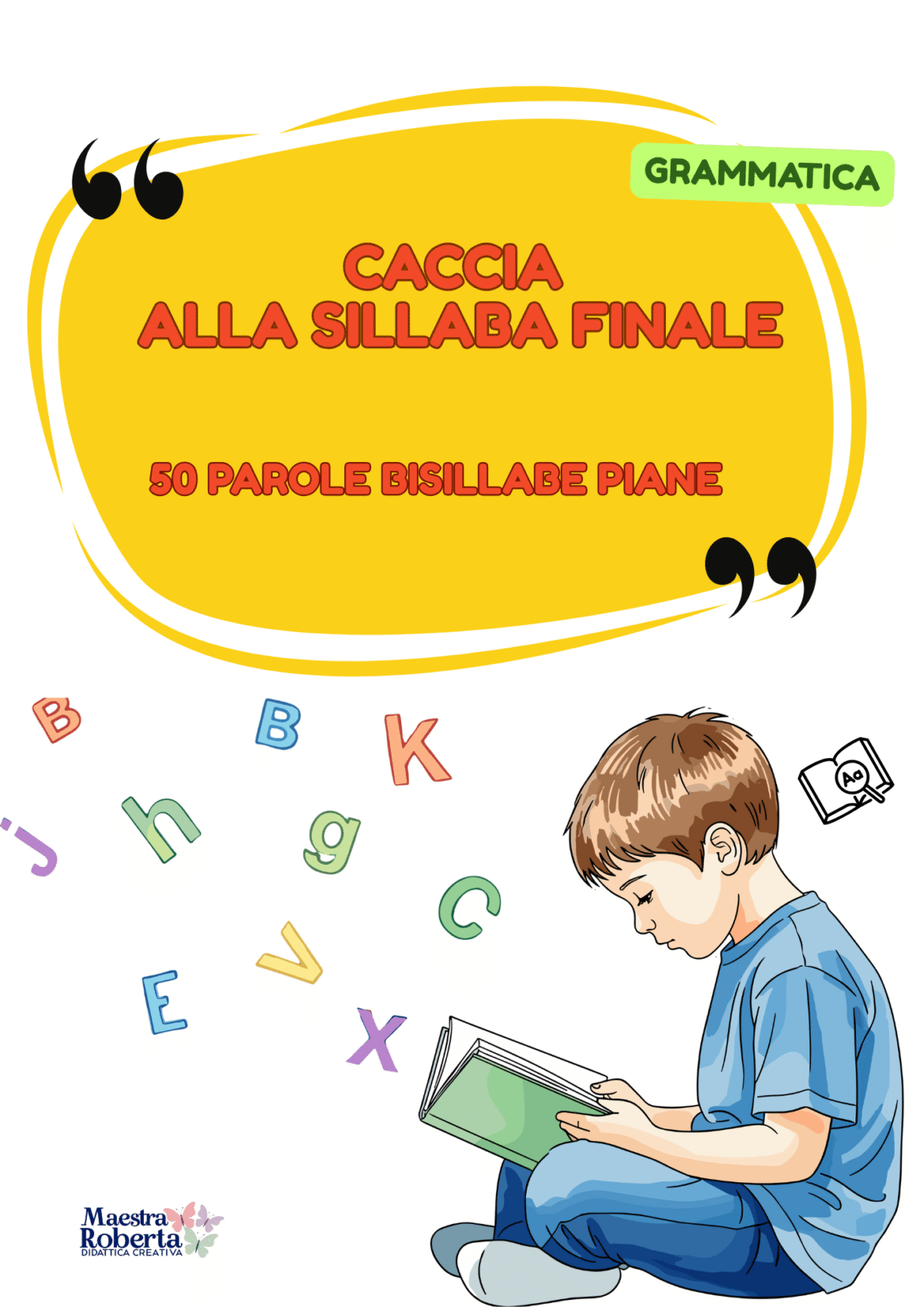 | Note aggiuntive per i genitori | Scopri "Caccia alla Sillaba Finale", un gioco linguistico divertente e stimolante per aiutare i tuoi alunni a padroneggiare le parole bisillabe piane e migliorare le loro competenze grammaticali. Con questo materiale, i bambini diventano piccoli esploratori delle parole. Il loro compito è semplice: completare i nomi delle immagini trovando e aggiungendo la sillaba finale mancante. |