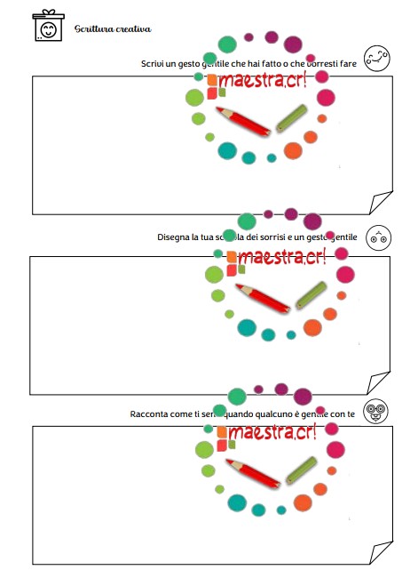 • ✍️ Proposte di scrittura creativa: Inviti alla riflessione sui propri gesti gentili e alla condivisione delle emozioni.