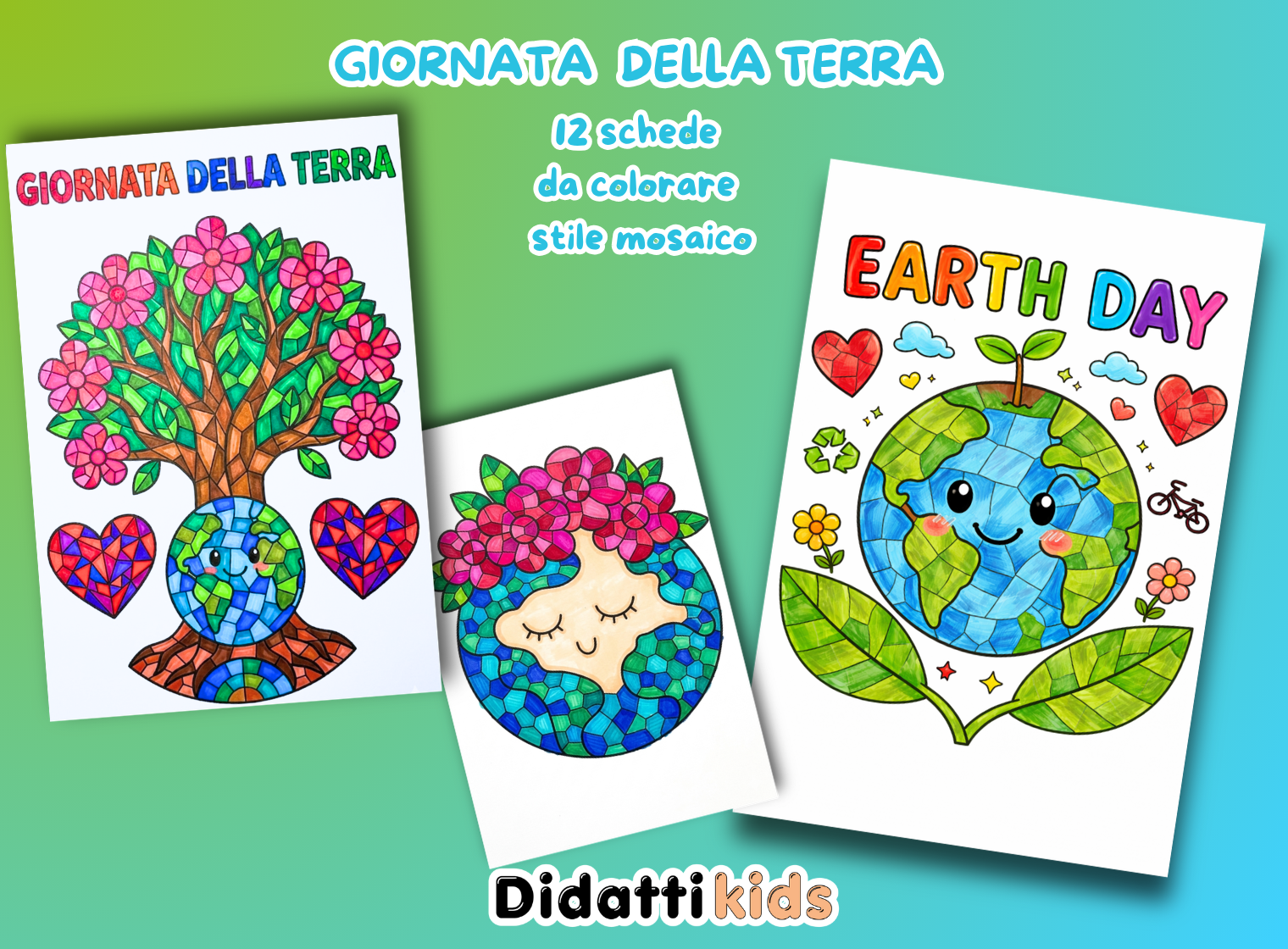 🌍 Giornata della Terra – Set di 12 Schede da Colorare (Stile Mosaico)