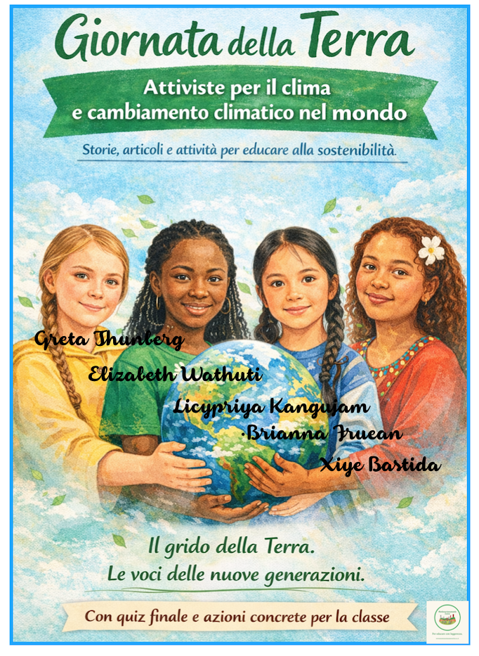 🌍 Giornata della Terra: ragazze attiviste per il clima e cambiamento climatico nel mondo Un viaggio educativo tra i continenti guidato dalle voci di giovani attiviste che, con coraggio e determinazione, si prendono cura del nostro pianeta. Un materiale che unisce narrazione, realtà e azione, per aiutare bambini e bambine a comprendere la crisi climatica e sentirsi parte del cambiamento. ✨ Cosa troverai ✔ Le storie di 5 giovani attiviste, una per continente, esempi reali di impegno e partecipazione ✔ Articoli (in versione semplificata) dal mondo per comprendere il cambiamento climatico nei diversi continenti ✔ Una sezione dedicata ai gesti concreti, per portare l’educazione ambientale nella quotidianità ✔ Un quiz finale con autocorrezione per consolidare gli apprendimenti 🌱 Perché usarlo Promuove educazione civica e ambientale in modo autentico Offre uno sguardo al femminile, ispirante e attuale Favorisce pensiero critico, consapevolezza e partecipazione Integra diverse discipline: geografia, lettura, cittadinanza 👩🏫 Destinatari Pensato per la scuola primaria (8-11 anni) Ideale per: Giornata della Terra Percorsi di educazione civica Progetti interdisciplinari Materiale stampabile pronto all’uso ( 16 pagine)