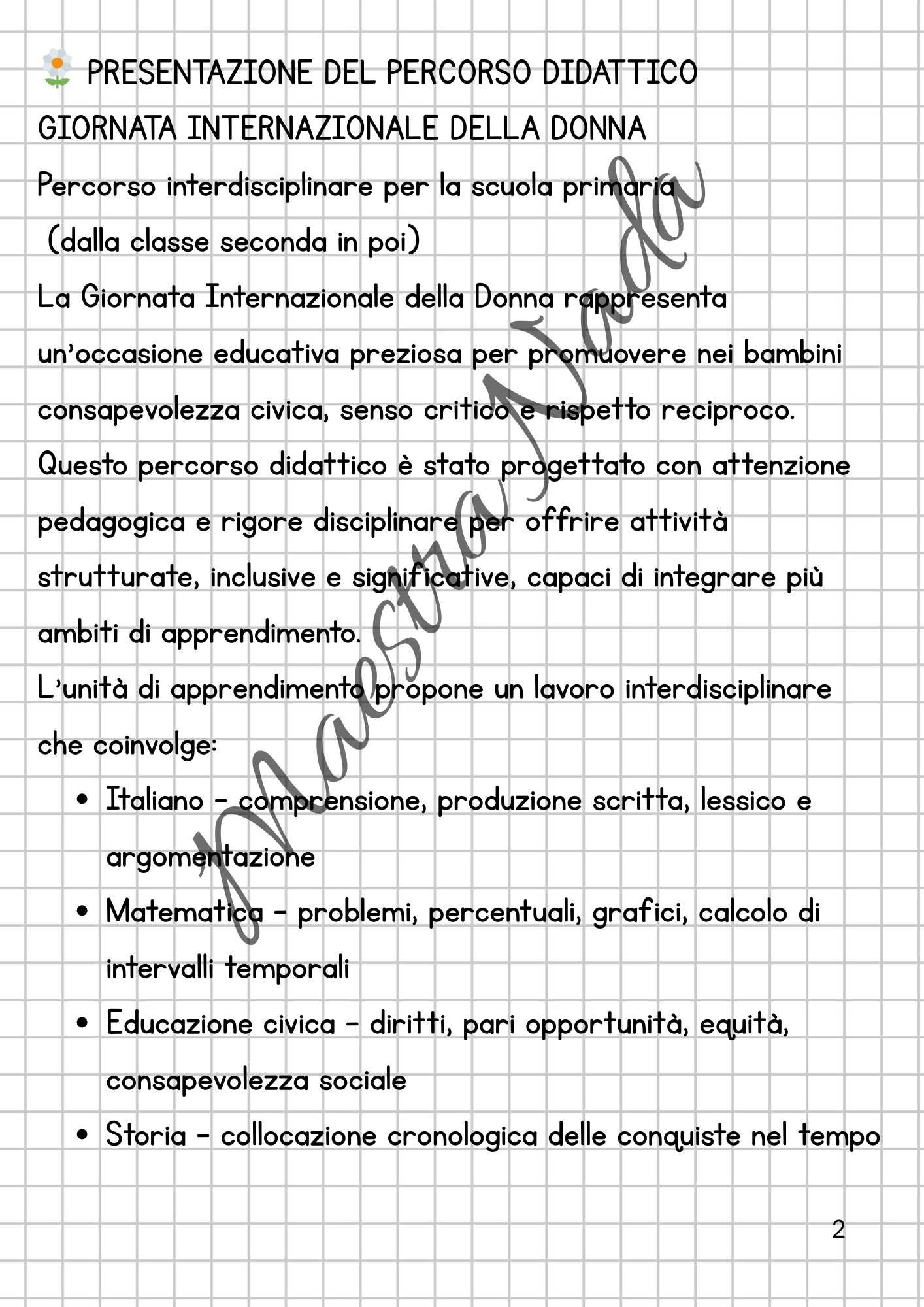 Questo materiale propone un’Unità di Apprendimento strutturata e interdisciplinare dedicata alla Giornata Internazionale della Donna, pensata per accompagnare gli alunni in un percorso di riflessione su diritti, pari opportunità, equità e consapevolezza civica.