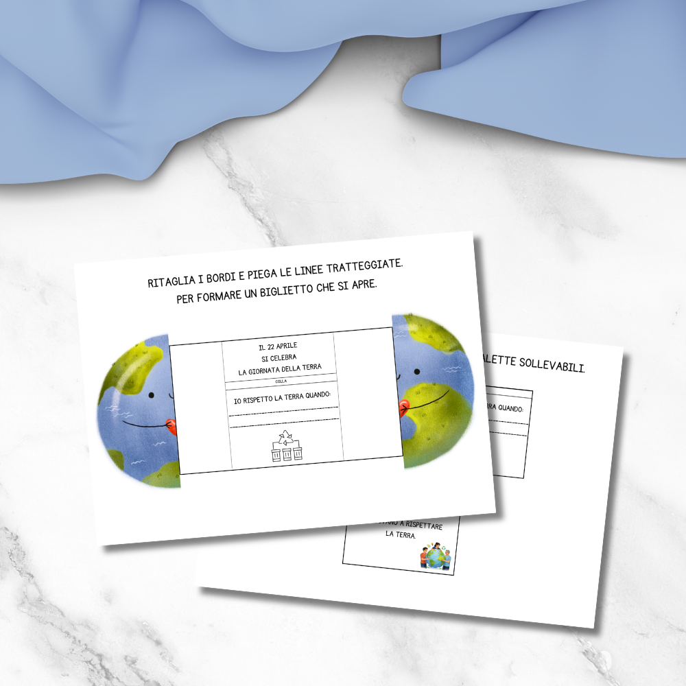 Questo lavoretto include il template di un biglietto pop-up, che si apre svelando un libricino sfogliabile. Questo libricino è pensato per essere completato dai bambini aggiungendo delle azioni quotidiane che aiutano a rispettare la Terra.