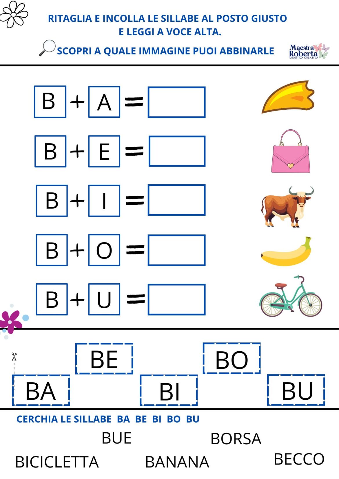 Questo materiale è pensato per rendere l’apprendimento delle sillabe un’esperienza divertente e coinvolgente. Gli studenti potranno ritagliare e incollare le sillabe nei posti giusti, mentre esplorano le immagini associate. È un modo fantastico per migliorare la lettura e la comprensione linguistica!