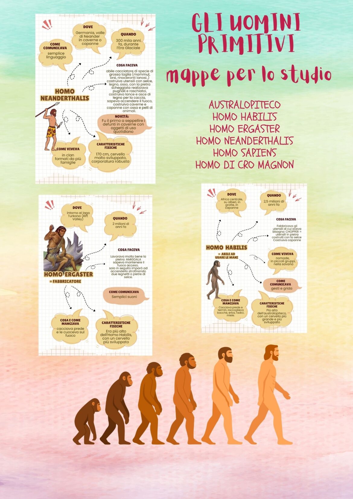 Un valido supporto allo studio per accompagnare i bambini nel viaggio alla scoperta degli uomini primitivi, dal primo australopiteco fino all’Homo di Cro-Magnon.