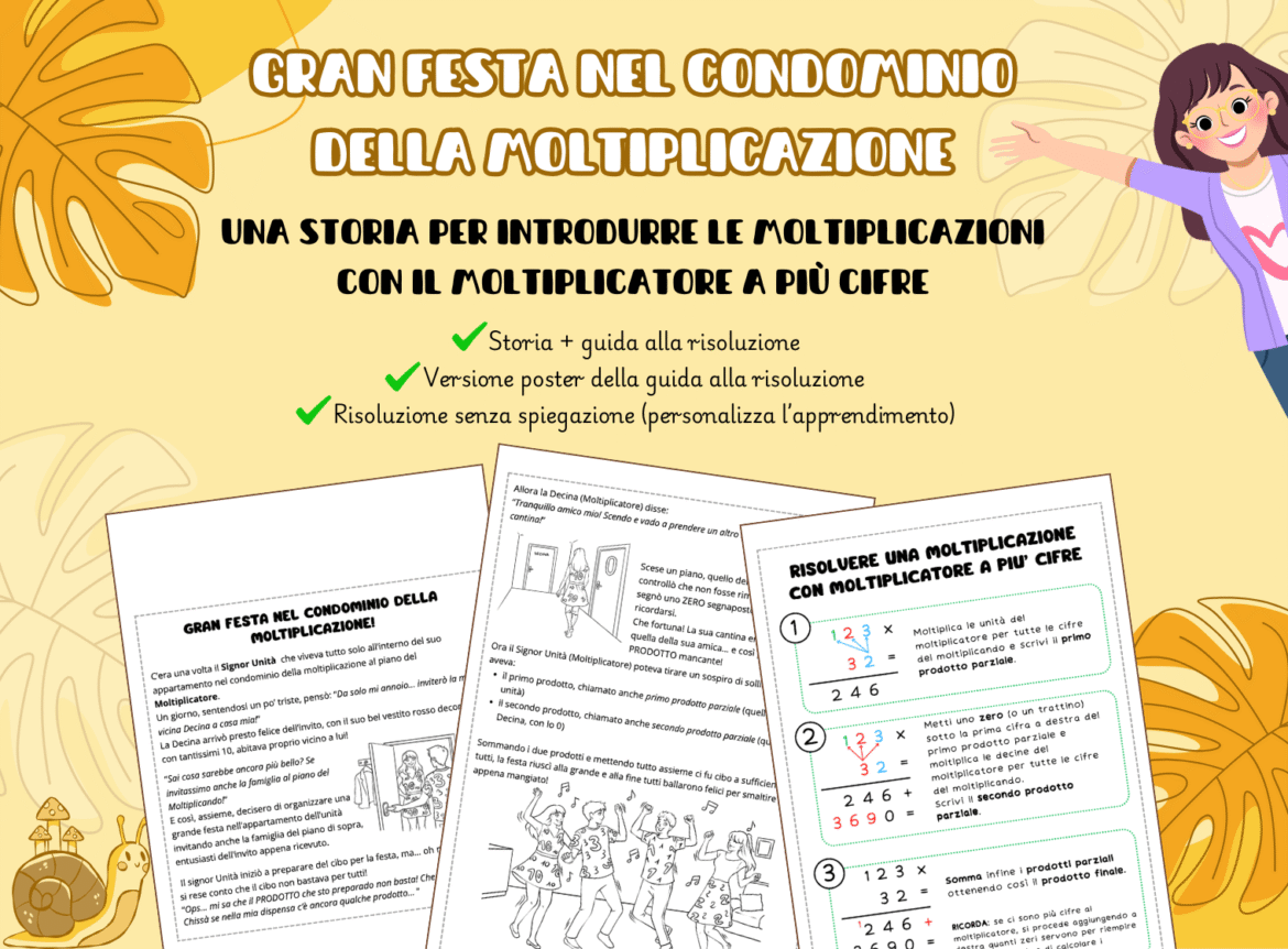 Una storia per introdurre la moltiplicazione in colonna con più cifre al moltiplicatore in modo leggero e divertente.