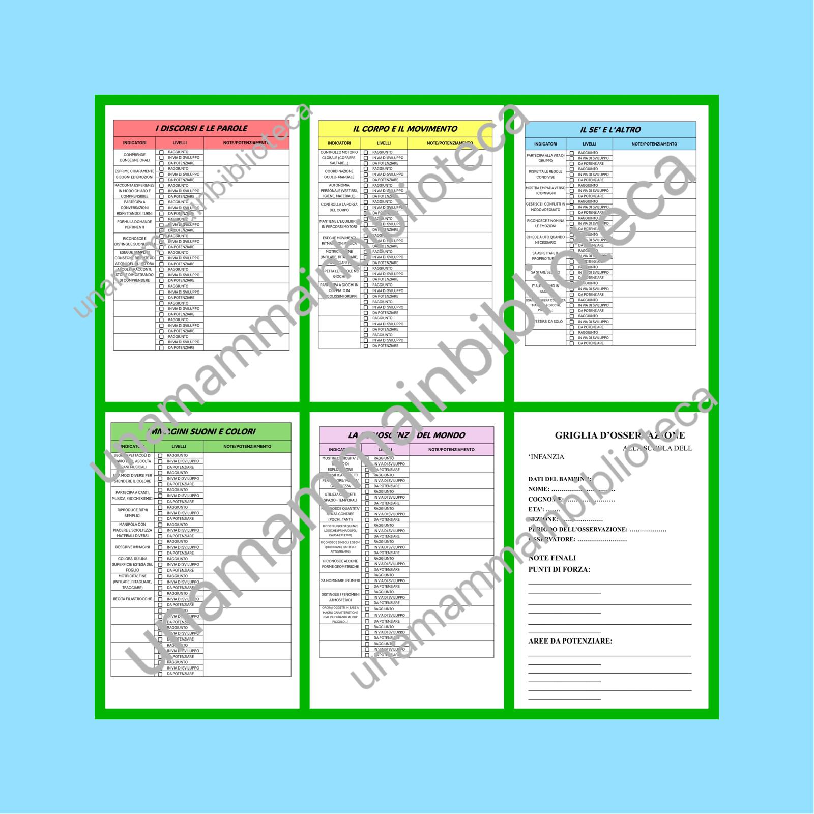 Una griglia d’Osservazione divisa per i cinque campi d’esperienza costruita seguendo le Indicazioni Nazionali per il curriculo.