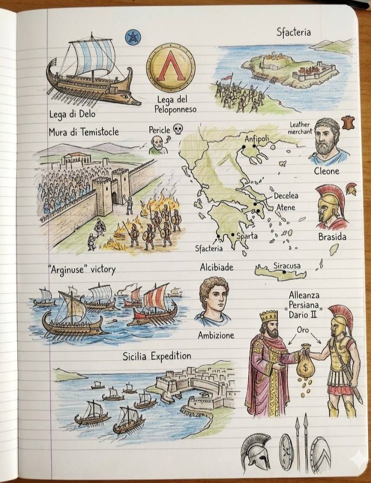 Guerra del Peloponneso – I e II fase, completa di appunti chiari e disegni esplicativi