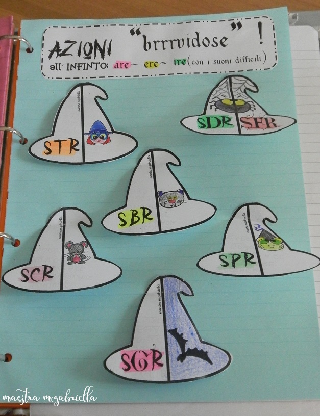 scheda didattica con cappelli sotto cui scrivere azioni con gli infiniti are, ere, ire
