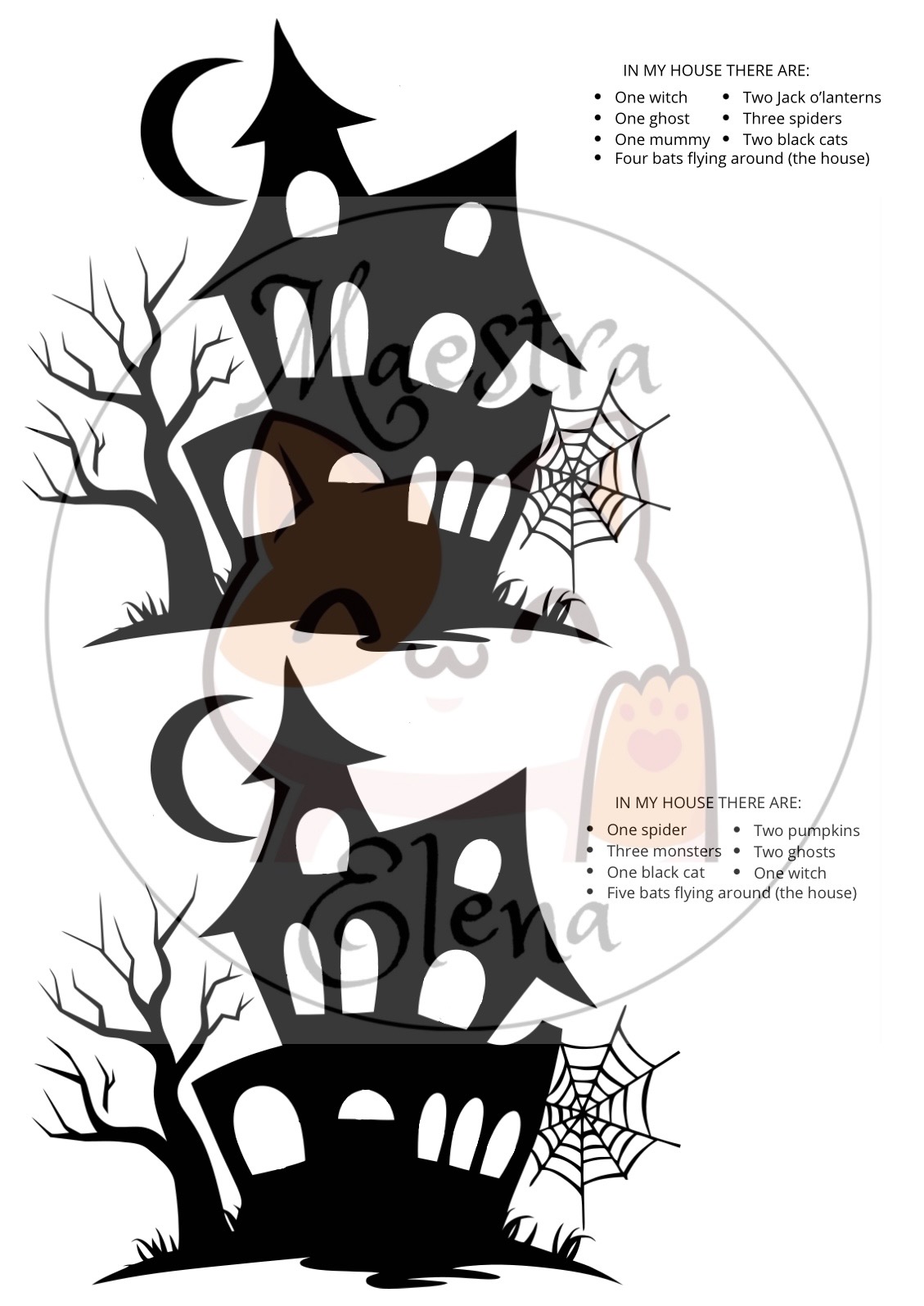 Attività didattica volta a consolidare la terminologia specifica di Halloween, i verbi To Be e To Have e le descrizioni. La prima attività (casa stregata) si basa sul reading e sul disegno mentre la seconda (creazione del mostro) permette ai bambini di scegliere il verbo corretto e le caratteristiche del mostro stesso.